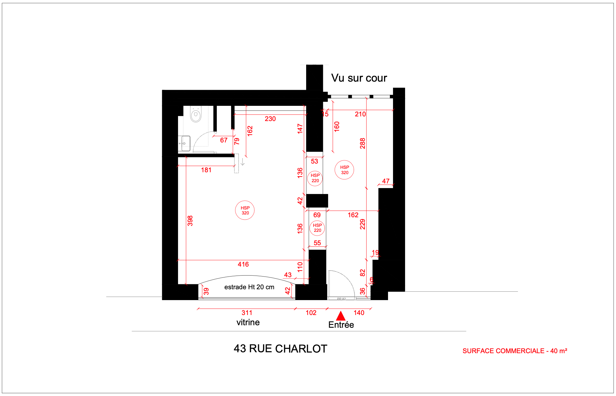 Address and size 43 rue Charlot, 75003 Paris, approx. 40 m² ground floor