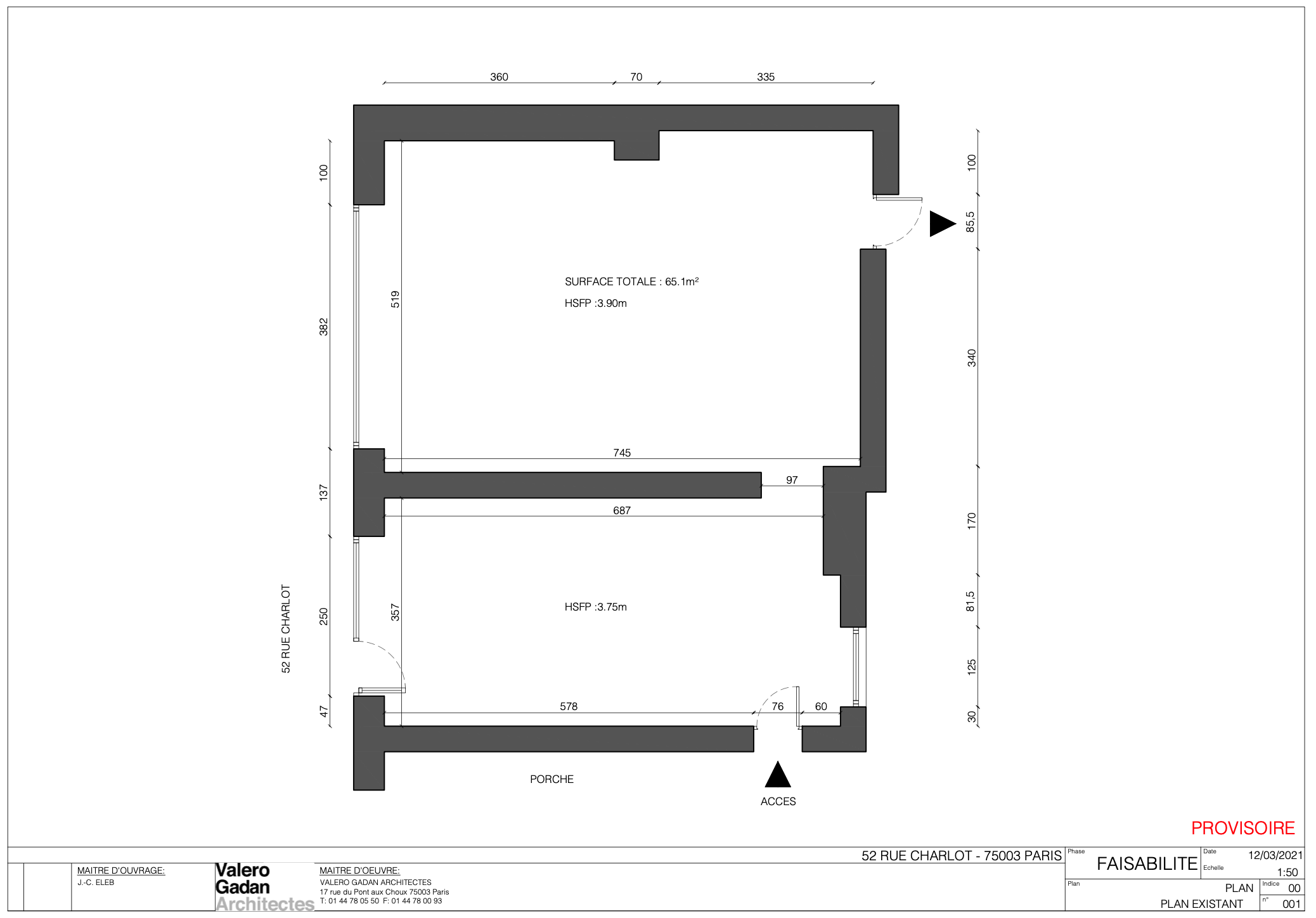 Ceiling heights: 3.90 m main volume / 3.75 m secondary volume