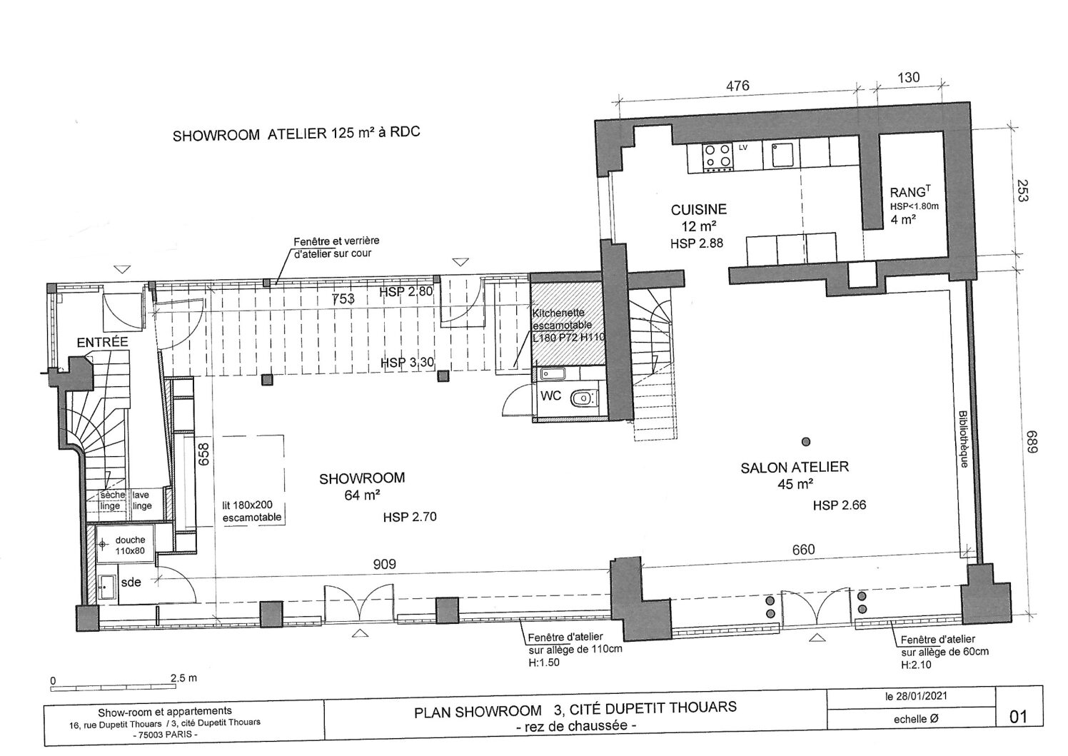 Positioned within a quiet private courtyard off Cité Dupetit-Thouars, the showroom benefits from controlled access and destination-driven footfall rather than open street traffic.